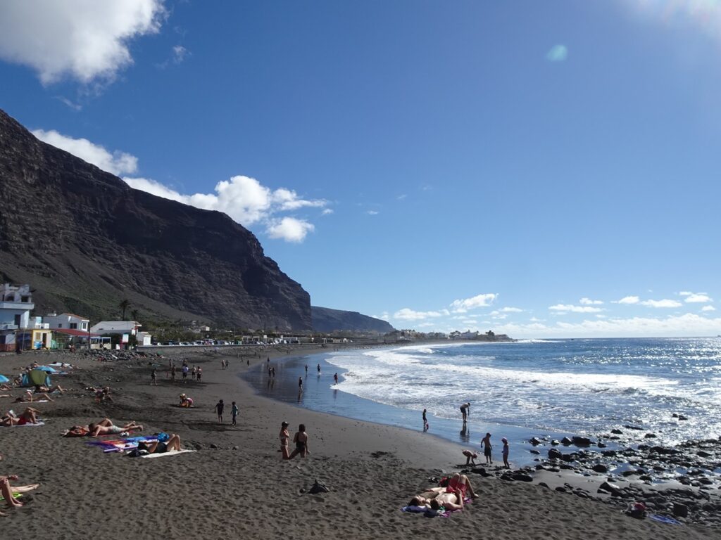 If you’ve still got enough daylight left, you can follow a narrow, winding road east through the hills to reach Playa de La Caleta, which is one of the most famous beaches on the island. The sea was super rough when we dropped by, but we found the scenery impressive and there are once again great views of El Teide on Tenerife.