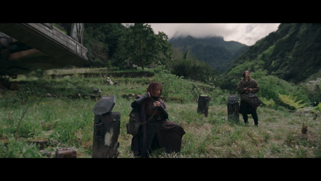 There are also some terraces with stone retaining walls, that are clearly visible in the background in the scene where Mae and Qimir pack up their stuff. If you follow the path up the western flank of the valley, you’ll pass some spots that the two walk along on their way to the forest.