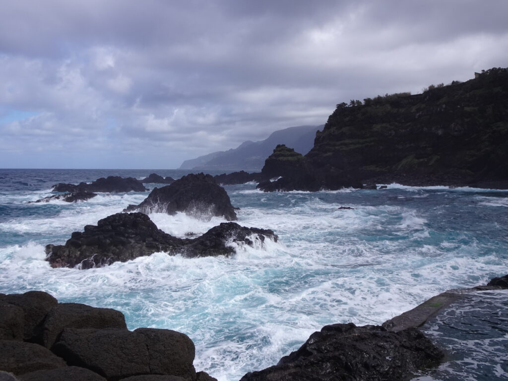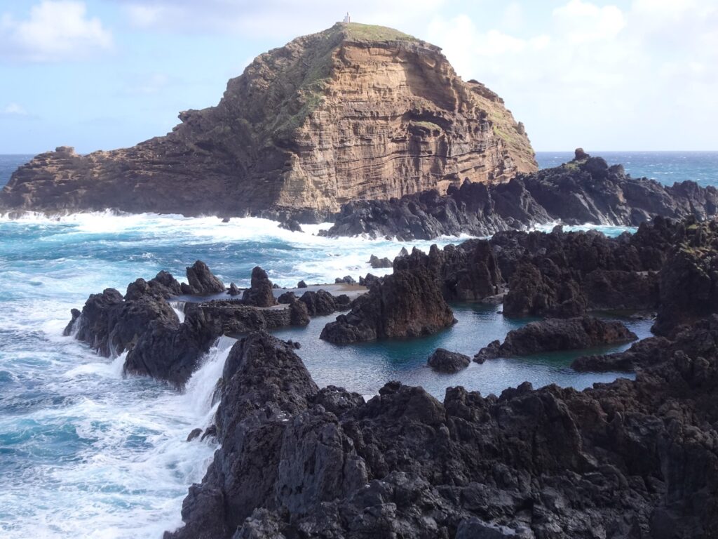 Let’s start near Madeira’s northwestern tip in the small town of Porto Moniz. Like many places on the island, it has some natural swimming pools near the Ocean, but these are by far the prettiest we’ve seen on Madeira.