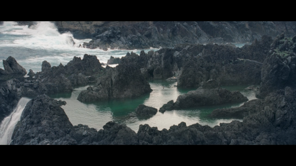 If you walk down to the pebbly shore, you can also find the shots of Mae walking along the sea to meet the Stranger (although the encounter itself was filmed at Seixal Pools – see below). We found it pretty easy to match up the shots, as there are plenty of characteristic rocks and boulders in the picture.